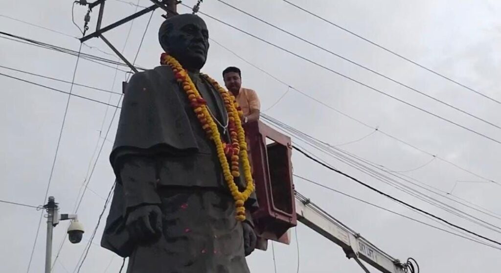 મોરબી : અખંડ ભારતના શિલ્પી લોખંડી પુરુષ અને ભારત રત્ન સરદાર વલ્લભભાઈ પટેલની ૧૫૦ મી જન્મજયંતિ નિમિત્તે મોરબી પ્રેસ મિડિયા એસોસિએશન દ્વારા આજે નવા બસ સ્ટેન્ડ ખાતે આવેલી સરદાર પટેલની પ્રતિમાને પુષ્પાંજલિ અર્પણ કરવામાં આવી હતી. આ અવસરે એસોસિએશનના પદાધિકારીઓ તથા સભ્યો દ્વારા પ્રતિમાને કુલ 150 ફૂલહાર પહેરાવી શ્રદ્ધાંજલિ પાઠવવામાં આવી હતી. પત્રકારોએ દેશની એકતા અને અખંડિતતા માટે સરદાર પટેલના અવિસ્મરણીય યોગદાનને યાદ કરતાં રાષ્ટ્રીય એકતા દિનની ઉજવણીનો સંદેશ આપ્યો હતો. આ પ્રસંગે અનેક પત્રકારો તેમજ સામાજિક આગેવાનો ઉપસ્થિત રહ્યા હતા અને સરદાર પટેલના વિચારોને જીવનમાં ઉતારી રાષ્ટ્રની એકતા જાળવવા માટે પ્રતિબદ્ધતા વ્યક્ત કરવામાં આવી હતી. ઉપસ્થિત પત્રકારોમાં પરેશભાઈ પારીયા, સંજયભાઈ અલગારી, યોગેશભાઈ રંગપરીયા, મયંક દેવમુરારી, મેહુલભા ગઢવી, પંકજ સનારીયા, ધવલ ત્રિવેદી, મોસીન શેખ, મોહમદશા શાહમદાર, રિતેશભાઈ સંચાણિયા સહિતના સભ્યો હાજર રહ્યા હતા.