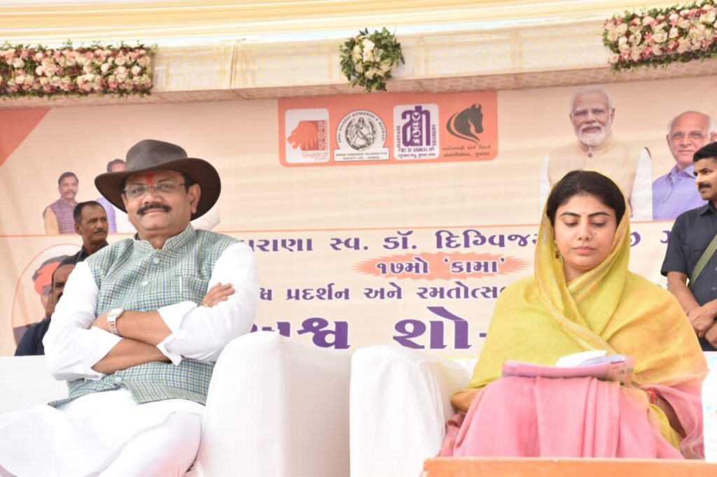 કાઠીયાવાડી અશ્વના શૌર્ય, સ્થિર સ્વભાવ અને સતર્કતાના ગુણોને ધ્યાને લઈ જાહેર સેવામાં તેમનો ઉપયોગ કરાય છે” તત્કાલીન દેશના પર્યાવરણ મંત્રી અને વાંકાનેરના રાજવી દિગ્વિજયસિંહ ઝાલાએ પર્યાવરણ ક્ષેત્રે ભગીરથ કાર્ય કર્યું; તેમણે અશ્વ શોની શરૂઆત કરાવી હતી” અશ્વ એ યોદ્ધાનો આત્મસાર્થી કહેવાય છે, ઇતિહાસમાં મહાન યોદ્ધાઓના અશ્વની ગાથાઓ પણ સ્વર્ણ અક્ષરે લખાયેલી છે” શિક્ષણ રાજ્યમંત્રીશ્રી રિવાબા જાડેજા ગીરના સાવજ, ગીર ગાય અને કાઠીયાવાડી અશ્વએ સૌરાષ્ટ્રને દેશ અને વિશ્વ કક્ષાએ આગવી ઓળખ અપાવી છે” સાંસદશ્રી કેસરીદેવસિંહ ઝાલા મહાનુભાવની પ્રેરક ઉપસ્થિતિમાં રાજકોટ પોલીસ માઉન્ટના અશ્વ સવાર પોલીસ જવાનોનું કરતબ પ્રદર્શન અને શ્રેષ્ઠ અશ્વ શણગાર સ્પર્ધા યોજાઇ મોરબી એ ઐતિહાસિક ધરોહર છે ત્યારે સાંસ્કૃતિક અને ઐતિહાસિક રીતે મહત્વના સ્થળ એવા વાંકાનેર ખાતે સરકારના પશુપાલન વિભાગ તથા કાઠીયાવાડી હોર્સ બ્રિડર્સ એસોસિએશન ગુજરાતના સંયુક્ત ઉપક્રમે વાંકાનેરના રાજવી સ્વશ્રી ડો. દિગ્વિજયસિંહ ઝાલાની સ્મૃતિમાં ત્રિદિવસીય કાઠિયાવાડી મારવાડી અશ્વ પ્રદર્શન – રમતોત્સવ ‘કામા અશ્વ શો’ નો પશુપાલન કેબિનેટ મંત્રીશ્રી જીતુભાઈ વાઘાણીએ શિક્ષણ રાજ્યમંત્રીશ્રી રિવાબા સહિતના મહાનુભાવોની પ્રેરક ઉપસ્થિતિમાં વિધિવત શુભારંભ કરાવ્યો હતો. આ પ્રસંગે કૃષિ અને ખેડૂત કલ્યાણ, સહકાર, પશુપાલન, ગૌસંવર્ધન, મત્સ્ય ઉદ્યોગ અને પ્રોટોકોલ મંત્રીશ્રી જીતુભાઈ વાઘાણીએ જણાવ્યું હતું કે, ગુજરાતના તત્કાલીન મુખ્યમંત્રી અને હાલના વડાપ્રધાનશ્રી નરેન્દ્ર મોદીએ અશ્વનું સંવર્ધન થાય અને તેમની સંખ્યા વધે તે માટેના પ્રયાસો કર્યા તે અંતર્ગતનું આ અનન્ય આયોજન છે. રાજ્ય સરકાર અનેકવિધ આયોજનો અને યોજનાઓ સાથે પશુ સંવર્ધન ક્ષેત્રે આગળ વધી રહી છે. આપણી નવી પેઢી આપણા સાંસ્કૃતિક ધરોહર સમાન અશ્વ વિશે જાણે, સમજે અને શીખે તે માટે આ પ્રકારના આયોજન ખરેખર પ્રેરણાદાયી છે. અશ્વ એ આપણી સંસ્કૃતિમાં શક્તિ, લાભ અને શુભનું પ્રતીક છે ત્યારે સરકાર દ્વારા આગામી સમયમાં વધુ એક અશ્વોની દેશી જાતિના માટેનું બ્રીડિંગ સેન્ટર બનાવવામાં આવશે. અશ્વોની સંખ્યામાં વધારો થાય તે માટે લક્ષ્ય નિર્ધારિત કરી મિશન મોડ પર કામગીરી કરવામાં આવશે. કાઠીયાવાડી અશ્વ તેમના શોર્ય અને સાહસ માટે જાણીતા છે એટલે જ તેમના શોર્ય, સ્થિર સ્વભાવ અને સતર્કતાના ગુણોને ધ્યાનમાં લઇ પોલીસ જાહેર સેવામાં પણ કાઠીયાવાડી અશ્વનો ઉપયોગ કરવામાં આવે છે. મંત્રીશ્રીએ વધુમાં જણાવ્યું હતું કે, આ કાર્યક્રમમાં બીમાર ઘોડાઓને હેરાન અને ન કરવામાં આવે તે માટે સ્પર્ધા પહેલા બ્લડ સેમ્પલ લેવાની પણ વ્યવસ્થા કરવામાં આવી હતી જેથી યોગ્ય તપાસ બાદ ૩૦૦ થી વધુ રજીસ્ટ્રેશન પૈકી ૨૫૦ જેટલા ઘોડાઓએ વિવિ