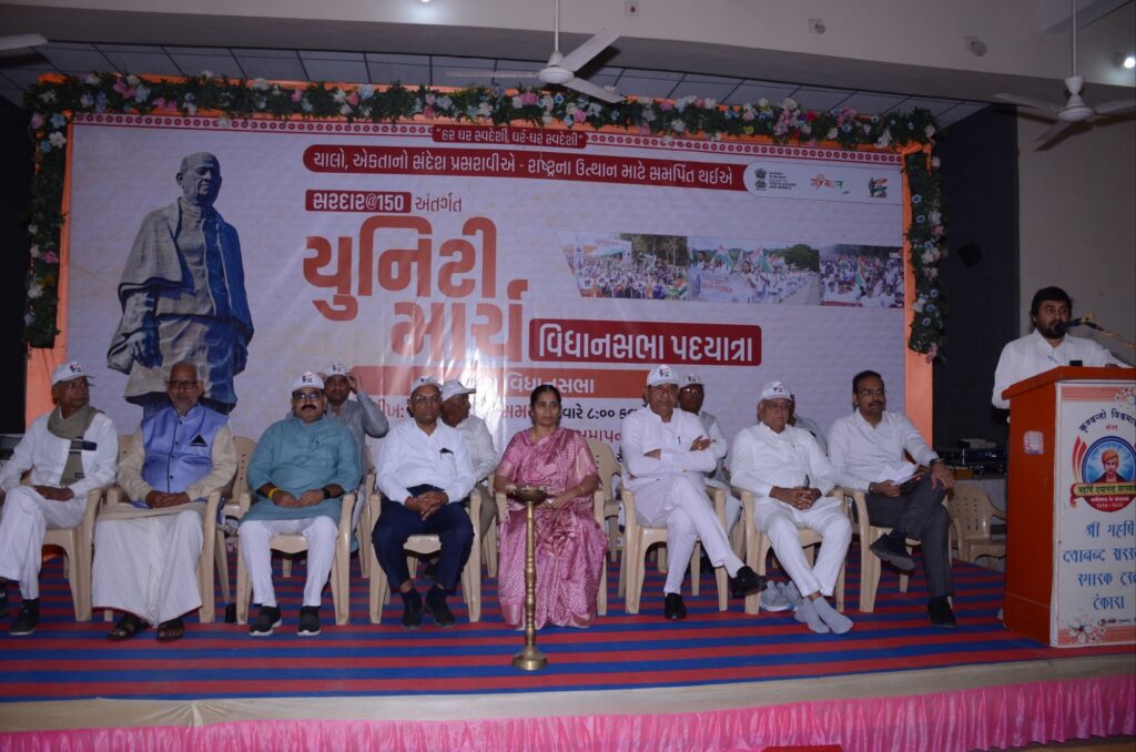 ધારાસભ્યશ્રી દુર્લભજીભાઈ દેથરીયાએ જણાવ્યું હતું કે, સરદાર વલ્લભભાઈ પટેલની ૧૫૦ મી જન્મ જયંતીની સમગ્ર દેશમાં ઉત્સાહભેર ઉજવણી કરવામાં આવી રહી છે. જેના ભાગરૂપે ટંકારા વિધાનસભા મતવિસ્તારમાં આ કાર્યક્રમ યોજાયો છે. સરદાર પટેલ કે, જેમણે દેશ દુનિયાને અખંડિતતાનો સંદેશો આપ્યો એવા લોખંડી પુરુષના વિચારોને જન જન સુધી પહોંચાડવાના હેતુથી આ કાર્યક્રમ યોજાયો છે.