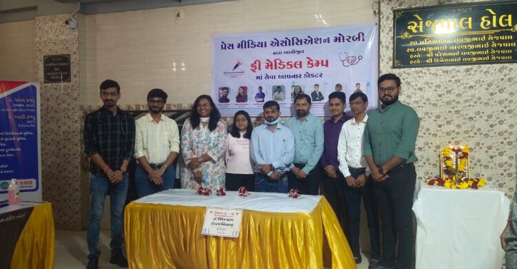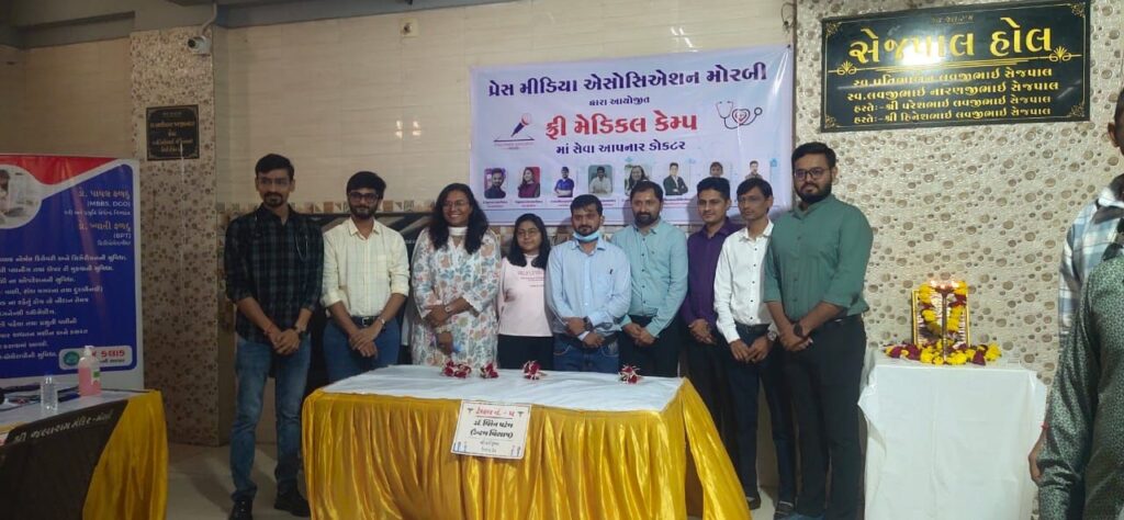 મોરબીમાં પ્રેસ મીડિયા એસોસિયેશન-મોરબ દ્વારા રવિવારે તારીખ ૯-૧૧- નાં રોજ અયોધ્યાપુરી મેઇન રોડ ઉપર આવેલા જલારામ મંદિરે ભવ્ય ફ્રી મેડિકલ કેમ્પનું આયોજન કરવામાં આવ્યું હતું. જેમાં સાતસો થી વધુ લોકોએ પોતાના દર્દ નુ ચેકઅપ કરાવીને ફ્રી દવા નો લાભ મેળવ્યો હતો. પ્રેસ મીડિયા એસોસિયેશન- મોરબી આયોજીત કેમ્પમાં સેવા આપતા સર્વે ડોકટર અને તેમની ટીમ જલારામ મંદિર ટ્રસ્ટી ચેમ્બર ઓફ કોમર્સ પ્રમુખ સિરામિક પ્રમુખો મોરબી dysp ઝાલા સાહેબ મુસ્કાન વેલ્ફેર ફાઉન્ડેશન સહિત જોડાયેલ તમામ લોકો નો આભાર વ્યક્ત કર્યોહતો. આજે સવારથી જ પ્રેસ મીડિયા એસોસિયેશન-મોરબી નાં સભ્યો જલારામ મંદિરે મેડિકલ કેમ્પમાં પહોંચી ગયા હતા અને યથા શક્તિ કામગીરી શરૂ કરી દીધી હતી અને 9 વાગ્યે સિરામિક એસોસિયેશન ના પ્રમુખ હરેશભાઇ બોપલિયા મુકેશભાઈ કુંડારીયા તેમજ ચેમ્બર ઓફ કોમર્સના પ્રમુખ જયંતીભાઈ જયરાજભાઇ પટેલ સહિત નાં આગેવાનો એ ઉપસ્થિત રહી ને દીપ પ્રાગટ્ય કરીને આ ફ્રી મેડિકલ કેમ્પનો પ્રારંભ કર્યો હતો. જેમાં રજીસ્ટ્રેશન કરાવીને જે દર્દ હોય તે દર્દી માટે ડોક્ટરોની પેનલ હતી તેમની પાસે મોકલી દેવામાં આવતા હતા અને તેમનું નિદાન કરીને જરૂરી દવાની ભલામણ કરતા ફ્રી દવાઓ પણ મેળવી હતી આ સમયે શહેર તથા ગામના અનેક સામાજિક કાર્યકરો, મોરબી નાં ડીવાયએસપી ઝાલા, જલારામ મંદિર નાં ટ્રસ્ટીઓ, સહિત અનેક આગેવાનો એ આ મેડિકલ કેમ્પની મુલાકાત લઈ ને આયોજકો નેં શુભેચ્છાઓ પાઠવી હતી. મોરબી જિલ્લામાં પત્રકાર ક્ષેત્રે કામ કરતાં ૧૮ થી ૨૦ નું યુનિટ બનીને પ્રેસ મીડિયા એસોસિયન મોરબી ની રચના થઈ છે અને એસોસિયેશન માં કોઈ હોદેદારો નથી બધા સભ્યો અને બધા પ્રમુખો જેવી રચના કરવામાં આવી છે. તેમને આ રચના થયા પછી પહેલું કામ આ મેડિકલ કેમ્પનું કરવામાં આવ્યું છે જેની સમગ્ર શહેરમાંથી લોકો દ્વારા શુભેચ્છાઓ ની વર્ષા થઈ છે. આ મેડિકલ કેમ્પમાં સેવા આપવા આવેલા દરેક ડોક્ટરો એ નિશુલ્ક સેવા આપી છે તે પણ એક સારી બાબત છે સવારનાં ૯ 9થી બપોરે ૧-૦૦ વાગ્યા સુધી આ મેડિકલ કેમ્પ ચાલ્યો હતો અને જેમાં સાતસો થી વધુ દર્દીઓએ આ મેડિકલ કેમ્પનો લાભ લીધો હતો. આટલી માતબર દર્દીઓની સંખ્યા મેડિકલ કેમ્પ નો લાભ લેતા પ્રેસ મીડિયા એસોસિયેશન-મોરબી નાં દરેક સભ્યો માં એક અલગ પ્રકારની ઊર્જા ઉત્પન્ન થઈ છે અને હવે પછી પણ આવું જ કોઈ સેવાકીય પ્રવૃત્તિ નું આયોજન કરવાનું થાય છે તેવો સુર વ્યક્ત કરવામાં આવ્યો હતો. એકંદરે આ પહેલીવાર મેડિકલ કેમ્પનું આયોજન કરવામાં આવ્યું છે અને ખુબજ સફળતા મળી છે.